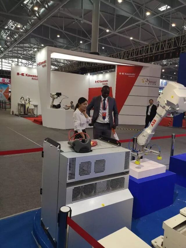 作为此次大会的精彩看点之一,工博士也参加了2018世界制造业大会。工博士展台位于WMC-01,高贵大气上档次的展台和机械臂的魅力吸引了不少人的目光,开幕第一天就有不少人前来参观询问。