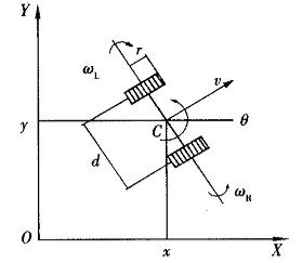 通过迭代可以获得移动式焊接机器人在下一个控制周期的平动速度和角速度v,w,运用公式运算,可得到直接控制变量左右轮的角速度: